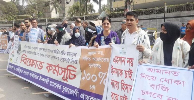আমানতের মুনাফা আদায়ের দাবিতে একীভূত ইসলামী ব্যাংকের গ্রাহকদের বিক্ষোভ