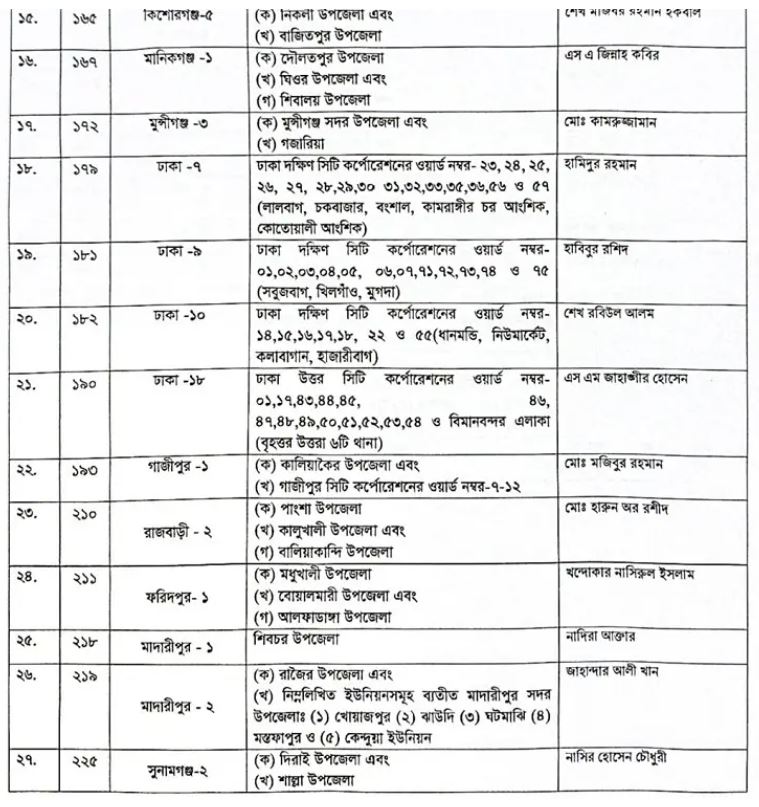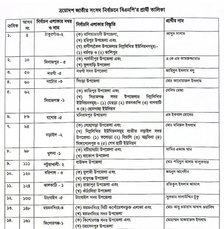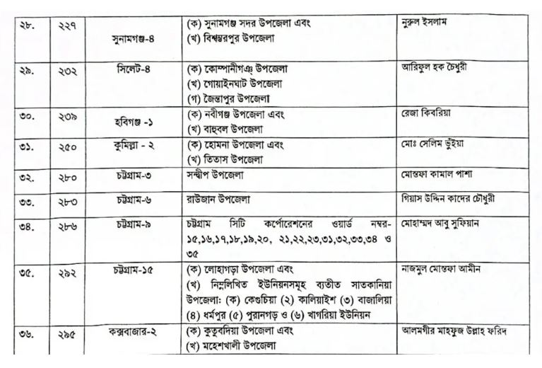 যেসব ৩৬ আসনে প্রার্থী ঘোষণা করা হলো: