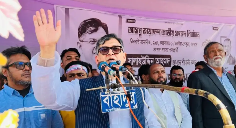 শুক্রবার (২৩ জানুয়ারি) চকরিয়া উপজেলার সুরাজপুর–মানিকপুর ইউনিয়নের উত্তর মানিকপুর গ্রামে আয়োজিত এক পথসভায় এসব কথা বলেন সালাহউদ্দিন আহমদ। তিনি কক্সবাজার-১ (চকরিয়া–পেকুয়া) আসনে বিএনপির মনোনীত প্রার্থী।