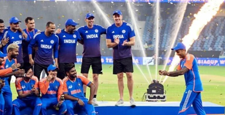 এশিয়া কাপে শিরোপা জিতেও ট্রফি তুলল না ভারত। ফাইনালে পাকিস্তানকে ৫ উইকেটে হারানোর পর দুবাই আন্তর্জাতিক স্টেডিয়ামে অনুষ্ঠিত পুরস্কার বিতরণী অনুষ্ঠানে ট্রফি গ্রহণে অস্বীকৃতি জানায় সূর্যকুমার যাদবের দল। ক্রীড়া ইতিহাসে বিরল এমন ঘটনা দেখে হতভম্ব হয়ে যান আয়োজক সংস্থা এশিয়ান ক্রিকেট কাউন্সিলের (এসিসি) কর্মকর্তারা।
