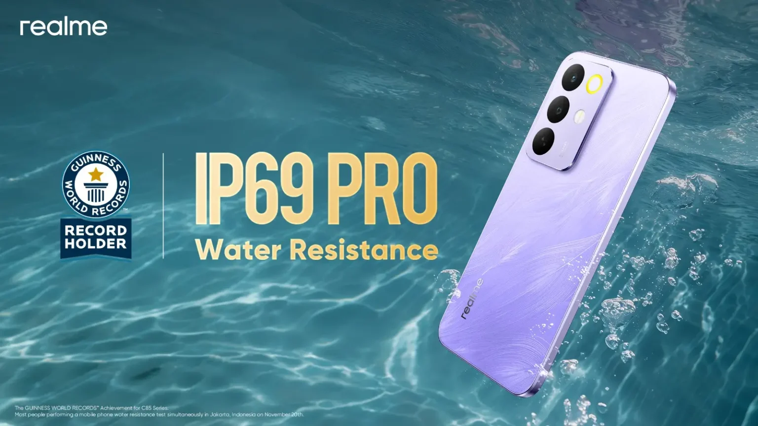 রিয়েলমি প্রেস বিজ্ঞপ্তিতে জানায়- ইন্দোনেশিয়ার জাকার্তায় সিলান্ডক স্পোর্টস সেন্টারে এ অসাধারণ রেকর্ড গড়া হয়। রিয়েলমি সি৮৫ সিরিজের উদ্ভাবনী ওয়াটারপ্রুফিং প্রযুক্তি ও ব্যবহারকারীদের জন্য ডিউরেবল প্রযুক্তি নিশ্চিত করতে ব্র্যান্ডটির প্রতিশ্রুতির অংশ হিসেবে এ মাইলফলক অর্জন করে রিয়েলমি।