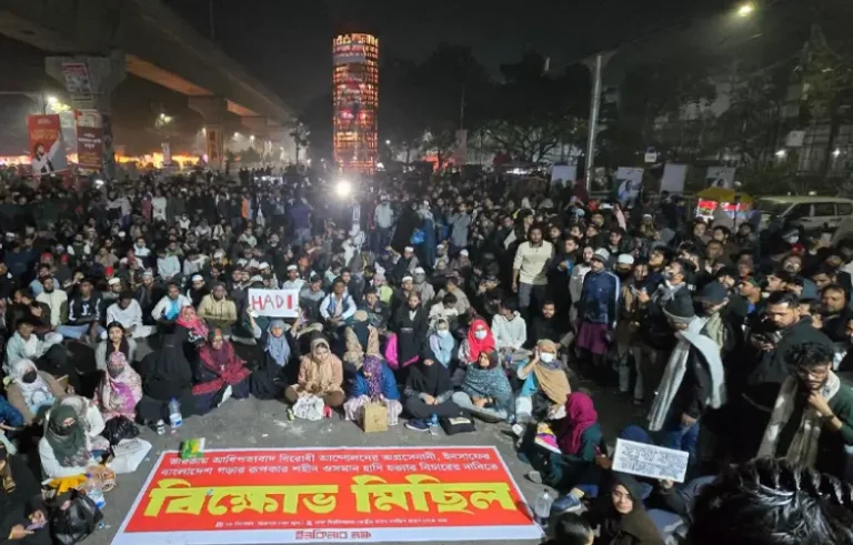 শুক্রবার (২৬ ডিসেম্বর) জুমার নামাজের পর ইনকিলাব মঞ্চের নেতাকর্মী, সাধারণ শিক্ষার্থী ও ছাত্র-জনতা ঢাকা বিশ্ববিদ্যালয়ের কেন্দ্রীয় মসজিদ থেকে একটি বিক্ষোভ মিছিল নিয়ে শাহবাগ মোড়ে এসে অবস্থান নেন। এ সময় তারা শাহবাগ মোড়ে যান চলাচল বন্ধ করে দেন।