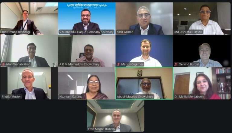 ডিজিটাল প্ল্যাটফর্মে আয়োজিত এই এজিএম-এ অংশ নেন কোম্পানির বোর্ড চেয়ারম্যান জন ওমুন্ড রেভহাগ, প্রধান নির্বাহী কর্মকর্তা (সিইও) ইয়াসির আজমান, চিফ ফাইন্যান্সিয়াল অফিসার (সিএফও) অটো মাগনে রিসব্যাক এবং কোম্পানি সেক্রেটারি এস. এম. ইমদাদুল হকসহ ঊর্ধ্বতন কর্মকর্তারা।