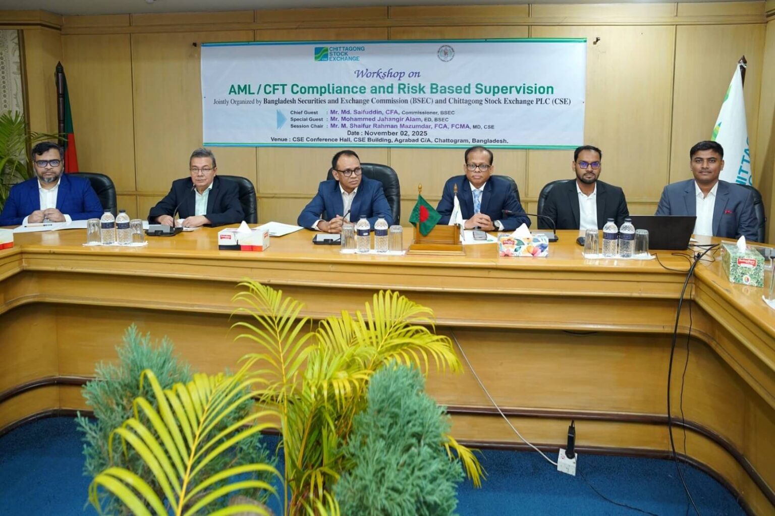 বাংলাদেশ সিকিউরিটিজ অ্যান্ড এক্সচেঞ্জ কমিশন (বিএসইসি) ও চিটাগং স্টক এক্সচেঞ্জ পিএলসি (সিএসই)-এর যৌথ উদ্যোগে ‘এএমএল/সিএফটি কমপ্লায়েন্স অ্যান্ড রিস্ক বেসড সুপারভিশন’ বিষয়ক একদিনব্যাপী প্রশিক্ষণ কর্মশালা অনুষ্ঠিত হয়েছে। রবিবার (২ নভেম্বর) সিএসই’র চট্টগ্রামস্থ প্রধান কার্যালয়ে আয়োজিত এই কর্মশালায় এক্সচেঞ্জের সংশ্লিষ্ট সকল স্টক ব্রোকার ও স্টক ডিলারের প্রতিনিধিরা অংশ নেন।