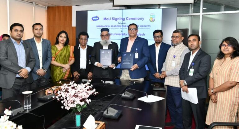 জাতীয় বিশ্ববিদ্যালয়ের শিক্ষার্থীদের পুঁজিবাজার বিষয়ে প্রশিক্ষণ দিতে বাংলাদেশ একাডেমি ফর সিকিউরিটিজ মার্কেটস (বিএএসএম) এবং জাতীয় বিশ্ববিদ্যালয়ের মধ্যে সমঝোতা স্মারক (এমওইউ) স্বাক্ষরিত হয়েছে। এর মাধ্যমে উভয় প্রতিষ্ঠানের মধ্যে নন-ফাইনান্সিয়াল রিসোর্স শেয়ারিং এবং বিএএসএমের অনলাইন-অফলাইন লাইব্রেরি অ্যাক্সেস আনুষ্ঠানিকভাবে চালু হলো।