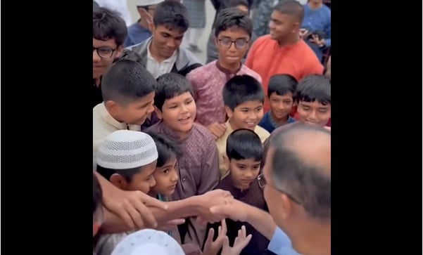 জুমার নামাজ শেষে মসজিদের বাইরে উপস্থিত শিশুদের সঙ্গে শুভেচ্ছা বিনিময় করেছেন প্রধানমন্ত্রী তারেক রহমান।