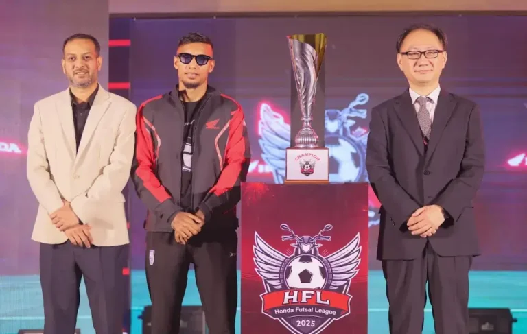 বাংলাদেশ হোন্ডা প্রাইভেট লিমিটেড (বিএইচএল) আয়োজিত হোন্ডা ফুটসাল লিগ ২০২৫-এর উদ্বোধনী অনুষ্ঠান অনুষ্ঠিত হয়েছে।মঙ্গলবার (১৯ নভেম্বর) বাংলাদেশ-চায়না ফ্রেন্ডশিপ কনফারেন্স সেন্টার (বিসিএফসিসি) কার্নিভাল হলে। তরুণদের খেলাধুলায় সম্পৃক্ত করতে নেওয়া এ আয়োজনে ছিল চোখধাঁধানো কিক-অফ সেশন, ৩২ দলের লোগো উন্মোচন ও ট্রফি প্রদর্শনী।