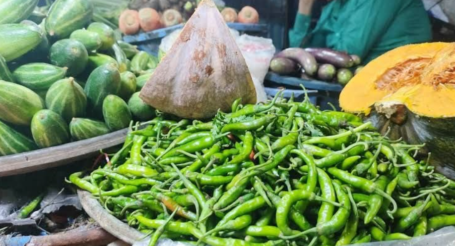 চালের বাজারে যদিও কিছুটা নিম্নমুখী প্রবণতা দেখা যাচ্ছে—মিনিকেট ৭০–৮০ টাকা, নাজিরশাইল ৭০–৮৫ টাকা ও ব্রি–২৮ চাল ৫৬–৫৮ টাকা দরে বিক্রি হচ্ছে। আলু কেজিপ্রতি ২০–২২ টাকায় পাওয়া গেলেও পেঁয়াজ এখনও ৮০ টাকায় স্থির।
