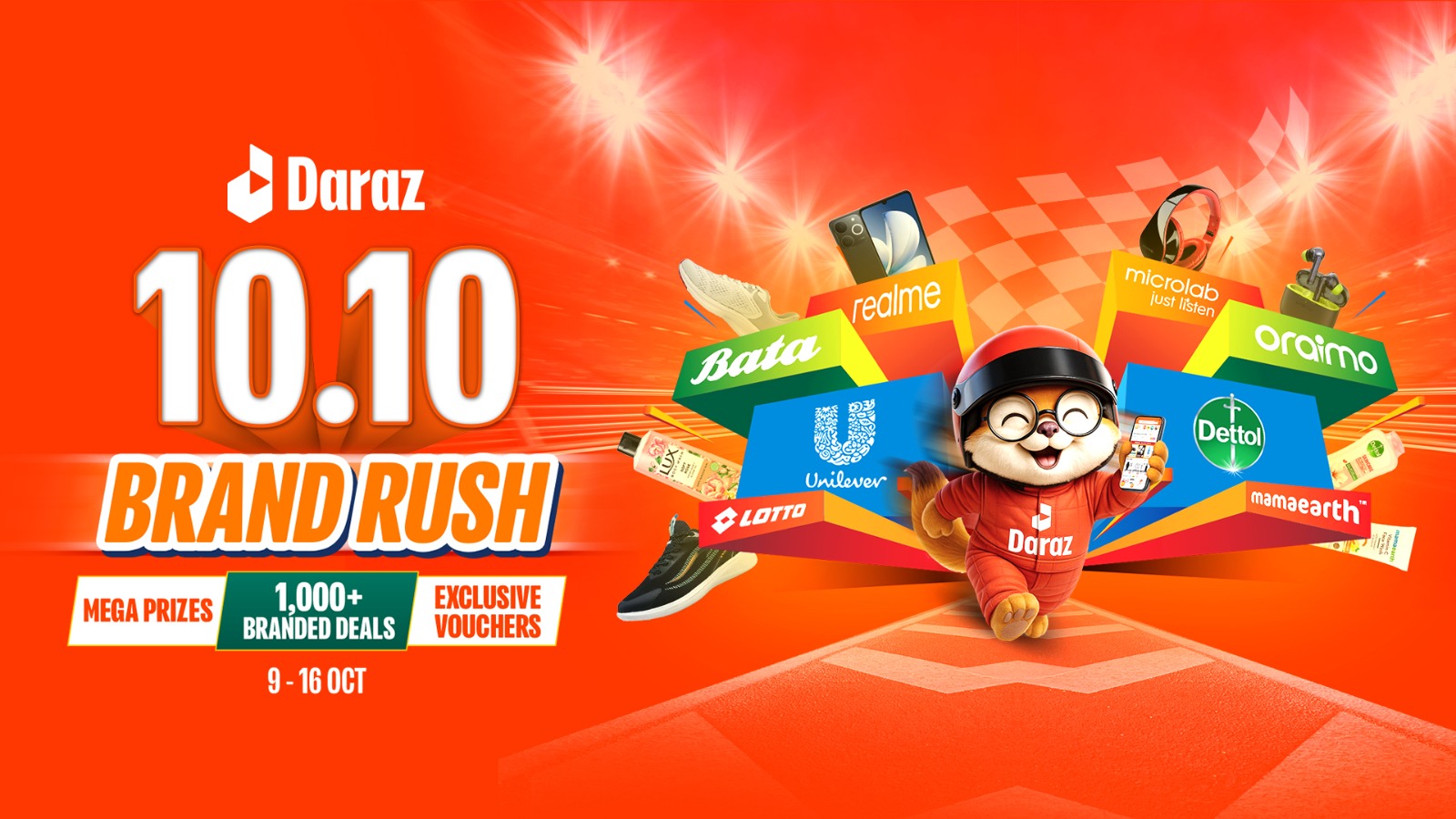 বাংলাদেশের শীর্ষস্থানীয় ই-কমার্স প্ল্যাটফর্ম দারাজ বাংলাদেশ গ্রাহকদের জন্য নিয়ে আসছে কেনাকাটার অন্যতম সেরা সুযোগ— ‘১০.১০ ব্র্যান্ড রাশ ক্যাম্পেইন’। দেশের সেরা ব্র্যান্ডগুলোর পণ্য অবিশ্বাস্য ছাড়ে গ্রাহকদের কাছে পৌঁছে দিতে এই ক্যাম্পেইনটি ৯ অক্টোবর রাত ৮টা থেকে শুরু হয়ে চলবে ১৬ অক্টোবর, ২০২৫ পর্যন্ত। ক্রেতারা এই ক্যাম্পেইনে ফ্ল্যাশ সেল ও মেগা ডিলে ৮০% পর্যন্ত ছাড়, হট ডিলে ৭৫% পর্যন্ত ছাড় এবং বহুল জনপ্রিয় ১০/১০০/১০০০/১০০০০ টাকার বিশেষ ডিল উপভোগ করতে পারবেন।