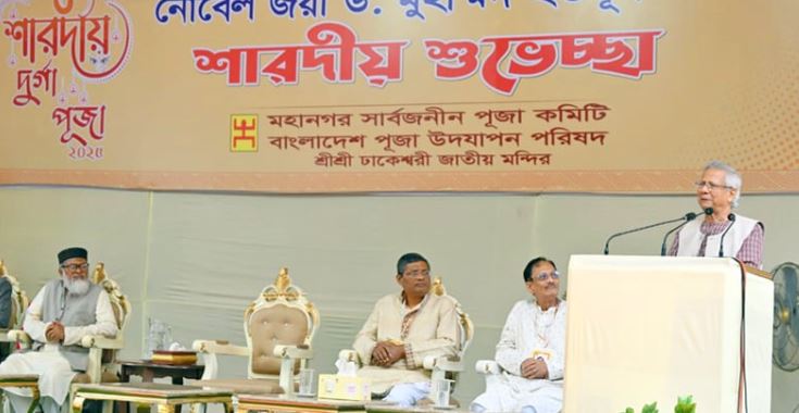শারদীয় দুর্গাপূজা উপলক্ষে শুভেচ্ছা জানাতে গিয়ে প্রধান উপদেষ্টা তার ব্যক্তিগত অনুভূতির কথাও ব্যক্ত করেন। তিনি বলেন, ‘আমি ভেবেছিলাম এবার হয়তো আমাকে এই আনন্দ থেকে বঞ্চিত করা হবে। কিন্তু আমি নাছোড়বান্দা। আমি বললাম, যাবই। এই আনন্দ থেকে আমি নিজেকে দূরে রাখতে চাইনি। যদিও শারদীয় দুর্গাপূজার সময়ে নিউইয়র্কে জাতিসংঘের অধিবেশনে সরকার প্রধান হিসেবে আমাকে থাকতে হবে, তাই আমি আগেভাগে এসেছি আপনাদের সঙ্গে আনন্দ ভাগ করে নিতে।’