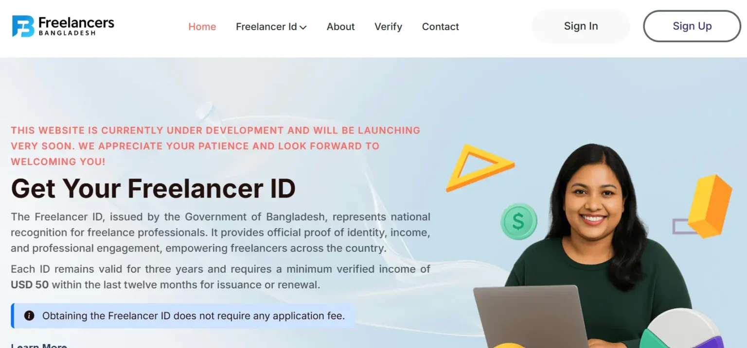 জানা যায়-তথ্য ও যোগাযোগ প্রযুক্তি বিভাগ এবং তথ্য ও যোগাযোগ প্রযুক্তি অধিদপ্তর-এর উদ্যোগে বাস্তবায়িত এই প্ল্যাটফর্মের মাধ্যমে দেশের ফ্রিল্যান্সাররা প্রথমবারের মতো একটি সরকারি স্বীকৃত ডিজিটাল পরিচয়পত্র পাওয়ার সুযোগ পাচ্ছেন।