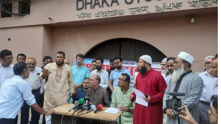 একীভূতকরণের (মার্জার) প্রক্রিয়ায় থাকা পাঁচ ইসলামী ব্যাংকের শেয়ার শূন্য ঘোষণার প্রতিবাদে মানববন্ধন করেছে ক্ষুদ্র বিনিয়োগকারীদের একটি অংশ। বৃহস্পতিবার (৬ নভেম্বর) দুপুরে ঢাকা স্টক এক্সচেঞ্জ (ডিএসই) ভবনের সামনে বাংলাদেশ পুঁজিবাজার বিনিয়োগকারী ঐক্য পরিষদের ব্যানারে এ কর্মসূচি পালন করা হয়।