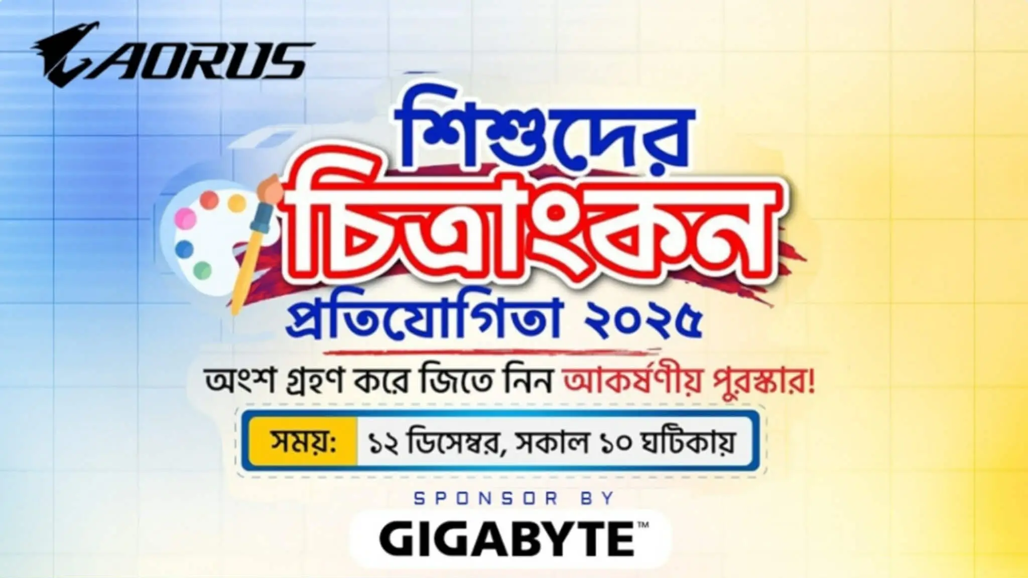 এবারও অনুষ্ঠিত হচ্ছে শিশুদের চিত্রাঙ্কন প্রতিযোগিতা, যার পৃষ্ঠপোষক হিসেবে থাকছে গ্লোবাল প্রযুক্তি ব্র্যান্ড গিগাবাইট। প্রতিযোগিতা অনুষ্ঠিত হবে ১২ ডিসেম্বর (শুক্রবার) বিসিএস কম্পিউটার সিটির উন্মুক্ত মঞ্চে।