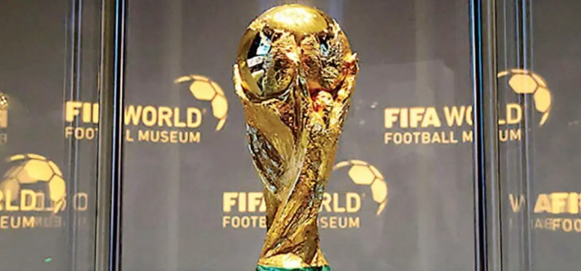 বাংলাদেশে এসে পৌঁছেছে ফিফা ফুটবল বিশ্বকাপের মূল ট্রফি। বুধবার (১৪ জানুয়ারি) সকাল ১০টার দিকে সোনালি এই ট্রফিটি হযরত শাহজালাল আন্তর্জাতিক বিমানবন্দরে অবতরণ করে। বিমানবন্দরে আনুষ্ঠানিকতা শেষে ট্রফিটি রাজধানীর পাঁচ তারকা হোটেল রেডিসনে নেওয়া হয়।