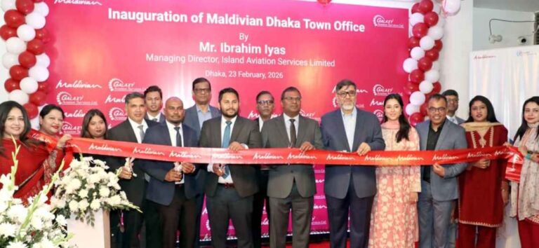 সোমবার (২৩ ফেব্রুয়ারি) অফিস উদ্বোধন করেন মালদিভিয়ান এয়ারলাইন্সের ব্যবস্থাপনা পরিচালক এম. ইব্রাহিম ইয়াস। অনুষ্ঠানে উপস্থিত ছিলেন গ্রাউন্ড অপারেশন পরিচালক আহমেদ ইব্রাহিম, জেনারেল ম্যানেজার (ইন্টারন্যাশনাল কমার্শিয়াল) মোহামেদ সাফাহ এবং বাংলাদেশের জেনারেল সেলস এজেন্ট (জিএসএ) গ্যালাক্সি বাংলাদেশ গ্রুপ–এর প্রেসিডেন্ট ও প্রধান নির্বাহী কর্মকর্তা আহমেদ ইউসুফ ওয়ালিদ।