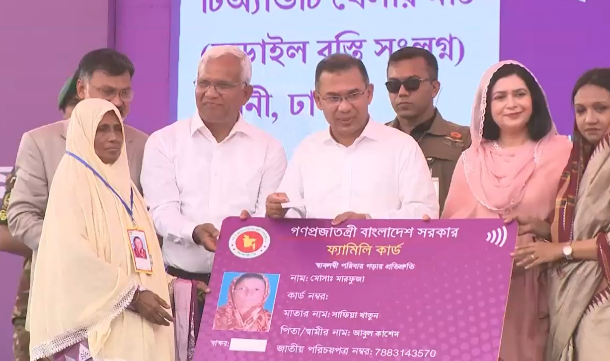 স্বল্প আয়ের মানুষের আর্থিক নিরাপত্তা নিশ্চিত করতে ‘ফ্যামিলি কার্ড’ কর্মসূচির উদ্বোধন করেছেন প্রধানমন্ত্রী তারেক রহমান।
