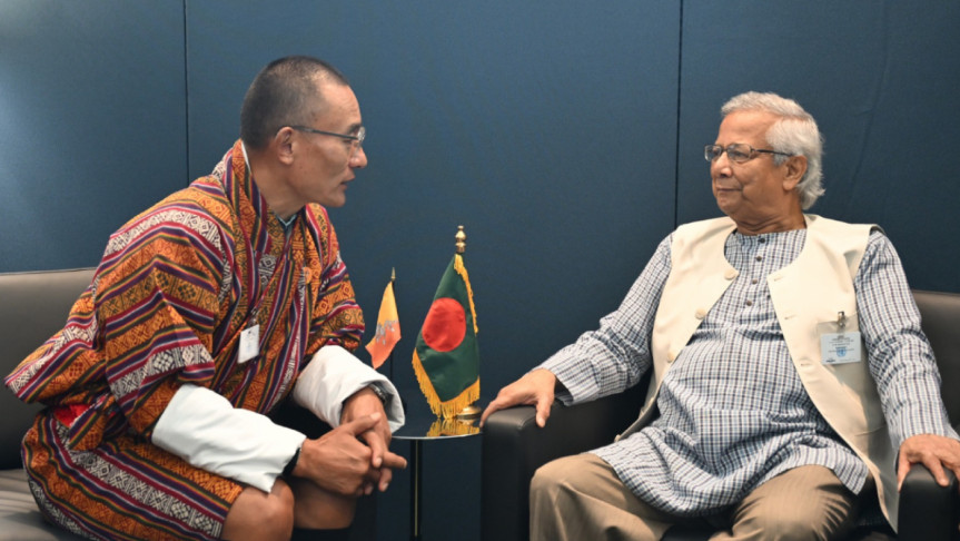 শুক্রবার জাতিসংঘ সাধারণ পরিষদের অধিবেশনের ফাঁকে প্রধান উপদেষ্টা ড. মুহাম্মদ ইউনূসের সঙ্গে বৈঠক করেন ভুটানের প্রধানমন্ত্রী শেরিং তোবগে । ছবি : প্রধান উপদেষ্টার ফেসবুক