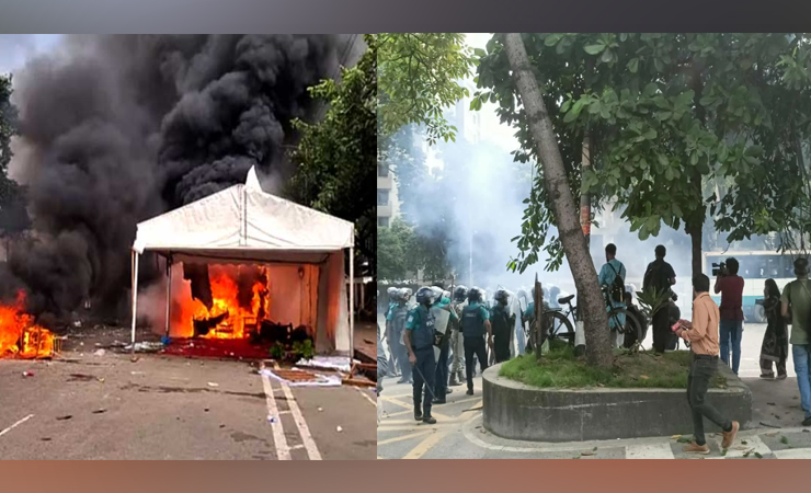 ‘জুলাই সনদ’ স্বাক্ষর অনুষ্ঠানের সময় বেলা সোয়া একটার পর সংঘর্ষ শুরু হয়। বেলা পৌনে দুইটার দিকে ঘটনাস্থলে একাধিক বিস্ফোরণের শব্দ শোনা যায়।