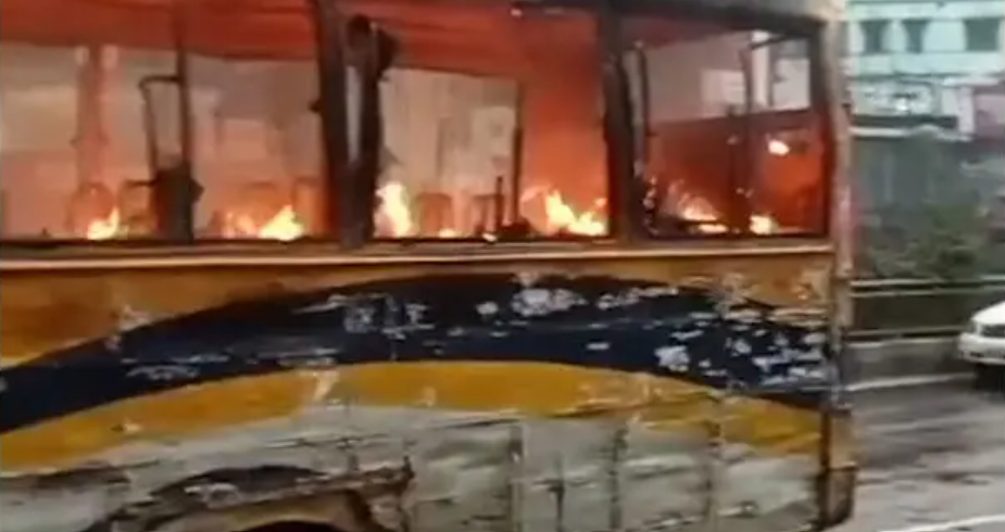 মিরপুরে যাত্রীবাহী বাসে দুর্বৃত্তদের আগুন