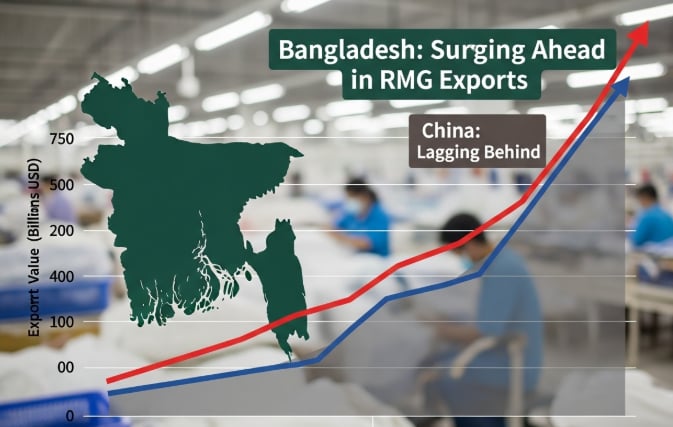 বিজিএমইএর সাবেক পরিচালক মহিউদ্দিন রুবেল বলেন, ‘চীনের দুর্বলতার কারণে বাংলাদেশ আরও ভালো করবে। তবে এখন শুধু পরিমাণ নয়, মূল্য সংযোজিত পণ্যের দিকে মনোযোগ বাড়াতে হবে। কারণ, একই ভলিউম রপ্তানি করেও অন্য দেশগুলো বেশি মূল্য পাচ্ছে।’ সূত্র: সমকাল।