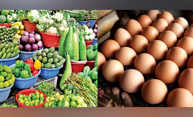 কাঁচামরিচ কিছুটা কমে ১২০–১৫০ টাকা কেজি, আলু বাড়তি, এখন ২৫–৩০ টাকা কেজি, পেঁয়াজ স্থিতিশীল, ১০০–১২০ টাকা কেজি, ব্রয়লার মুরগি ১৬০–১৭০ টাকা কেজি, সোনালি মুরগি: ২৯০–৩০০ টাকা কেজি , ডিম প্রতি ডজন ১২০–১৩০ টাকা