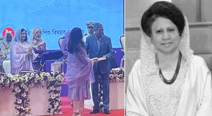 খালেদা জিয়ার পক্ষে রাষ্ট্রপতির হাত থেকে পুরস্কার গ্রহণ করেন তার নাতনি ব্যারিস্টার জাইমা রহমান। নারী শিক্ষা ও গণতন্ত্রের অগ্রযাত্রায় অবদানের স্বীকৃতি হিসেবে মরণোত্তরভাবে তাকে এই সম্মাননা দেওয়া হয়।